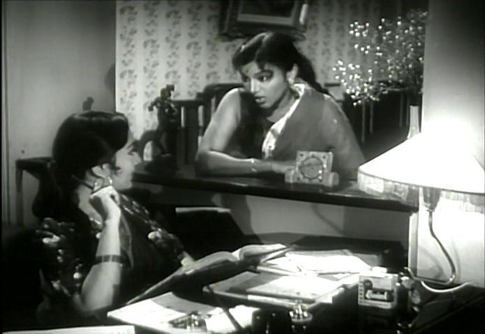 Arun's fiancee Tara (Seema Deo), in the meanwhile, is sent to her city cousin to gain some town polish and sophistication. The city cousin is, of course, Kavita. Aside: how come families in Hindi movies happen to be so closely knit and spread everywhere to catch the hapless characters? O well, we wont trouble ourselves with these details.