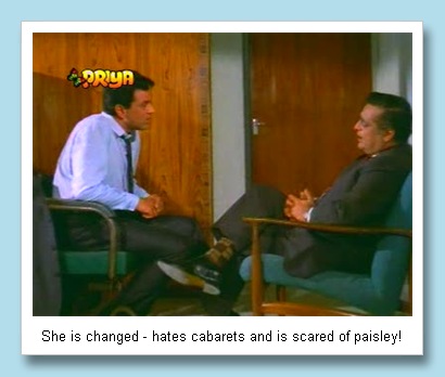 Subodh patiently keeps trying to remind her of their shared past, but Nanda is unconvinced. She is Radha and thats who she is staying! A worried Subodh brings in psychiatrist Dr. Rajesh Khanna (yes really - and played by Dharmendra at that!) whose examination agitates Nanda no end. It would agitate me too, if a shrink started to diagnose my mental condition by examining my blood pressure!