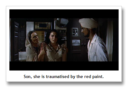 Victoria’s been feeling alienated since her sojourn among the Brits in Delhi. It brought home to her that the British consider her a half caste (or Chee chee, as the film calls them) since she is half Indian, and the Indians do not accept her since she is half British. She is desperate to belong somewhere, and Ranjit and Sadani’s help convinces her that there is place for her among Indians. So, Victoria takes to wearing sarees, agrees to marry Ranjit and convert to Sikhism. But its not to be. The aftermath of McDaniel’s death catches up with her and things rapidly get complicated.